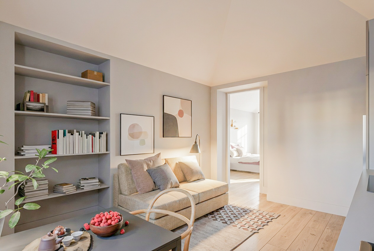 Composizione: soggiorno living con angolo cottura, due ampie camere matrimoniali adatte anche ad accogliere due letti singoli, un bagno con antibagno e una cantina.