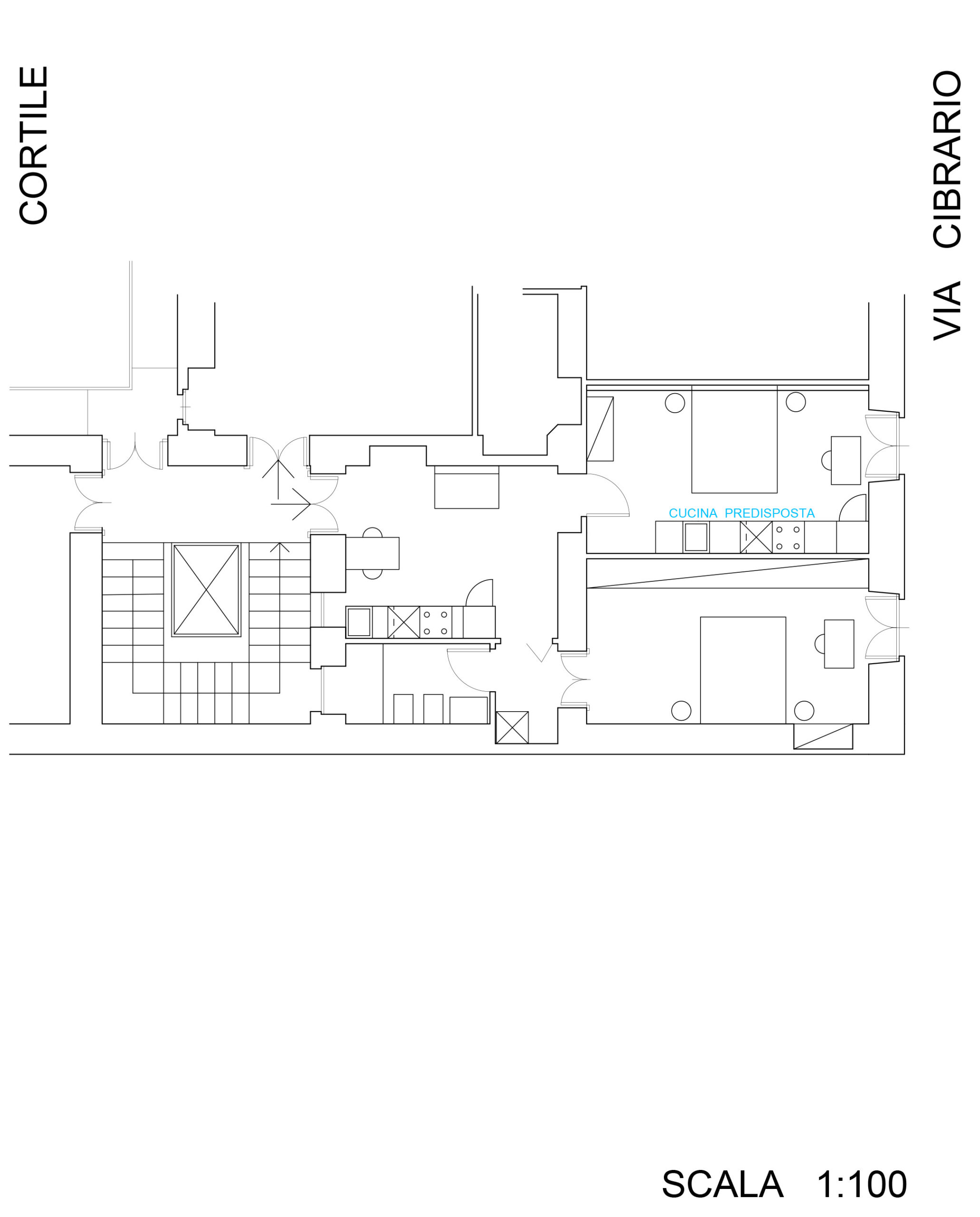 Nel caso in cui si desideri ampliare la zona giorno è possibile spostare la cucina nella camera verso via Cibrario grazie alla predisposizione di carichi e scarichi acqua che è stata realizzata.