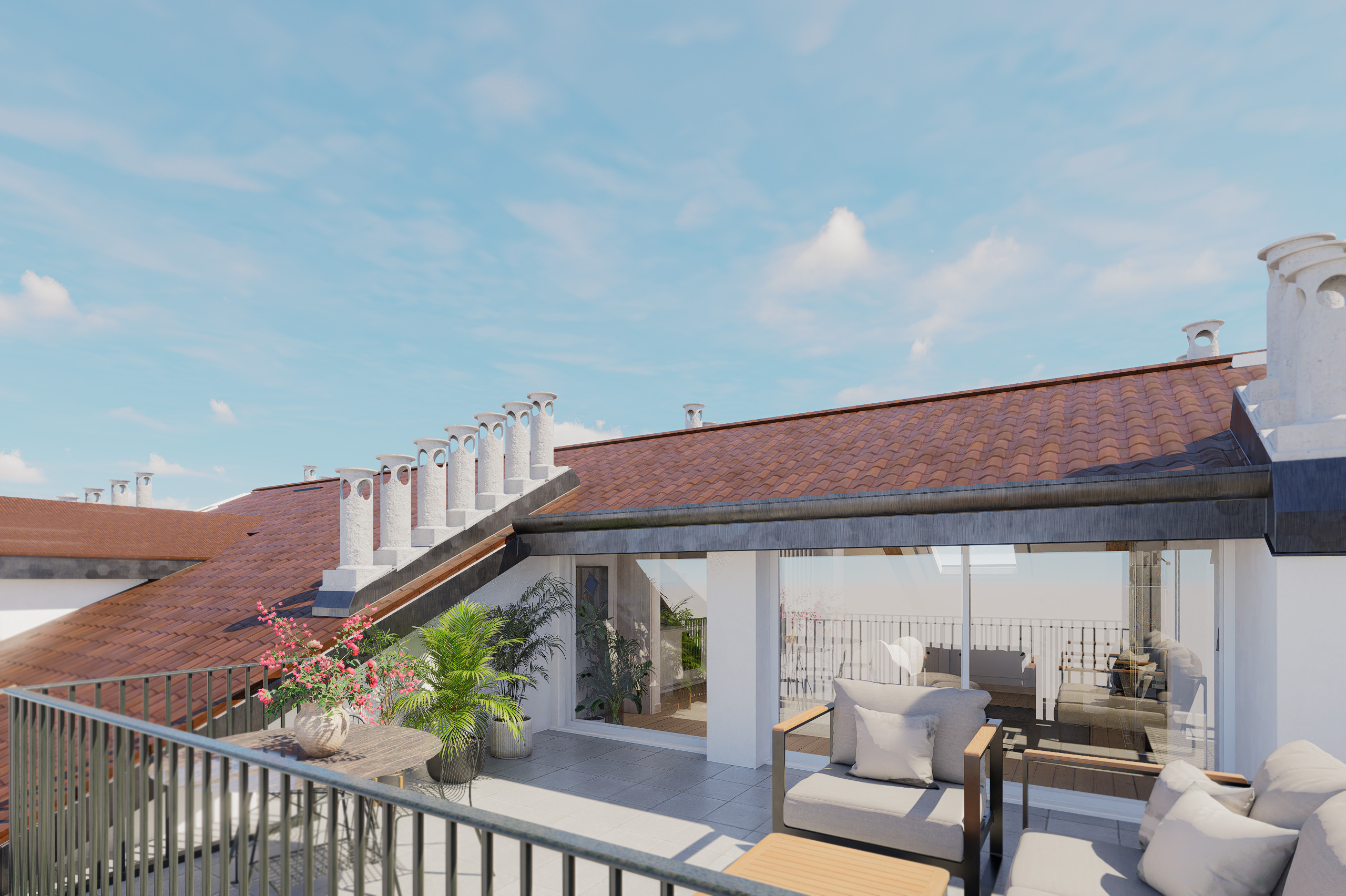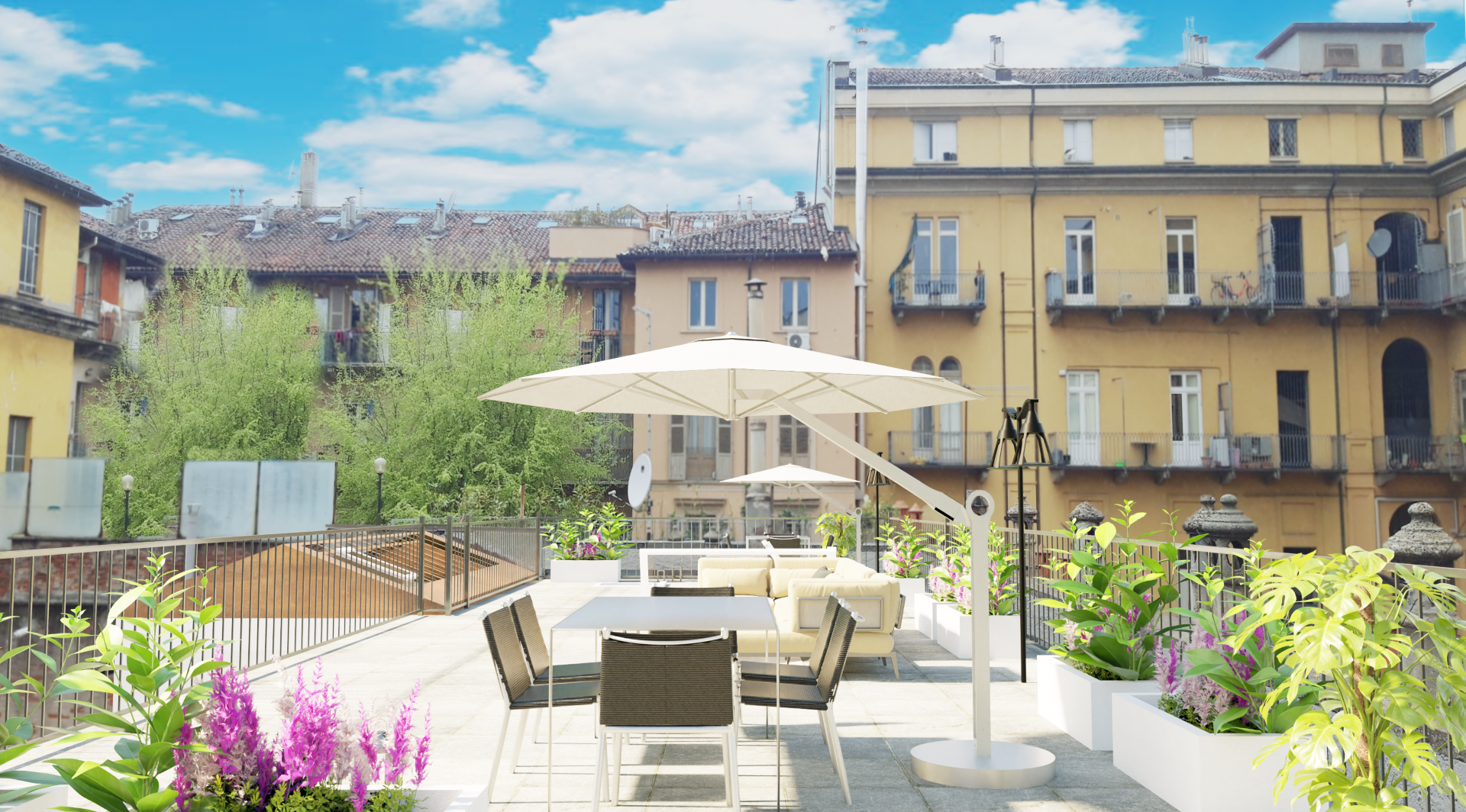 Via Boucheron,  trilocale al secondo piano molto luminoso e silenzioso con affaccio su interno cortile, completamente ristrutturato con materiali di pregio, gode di un bellissimo terrazzo di 77 mq collegato all’appartamento con scala interna.