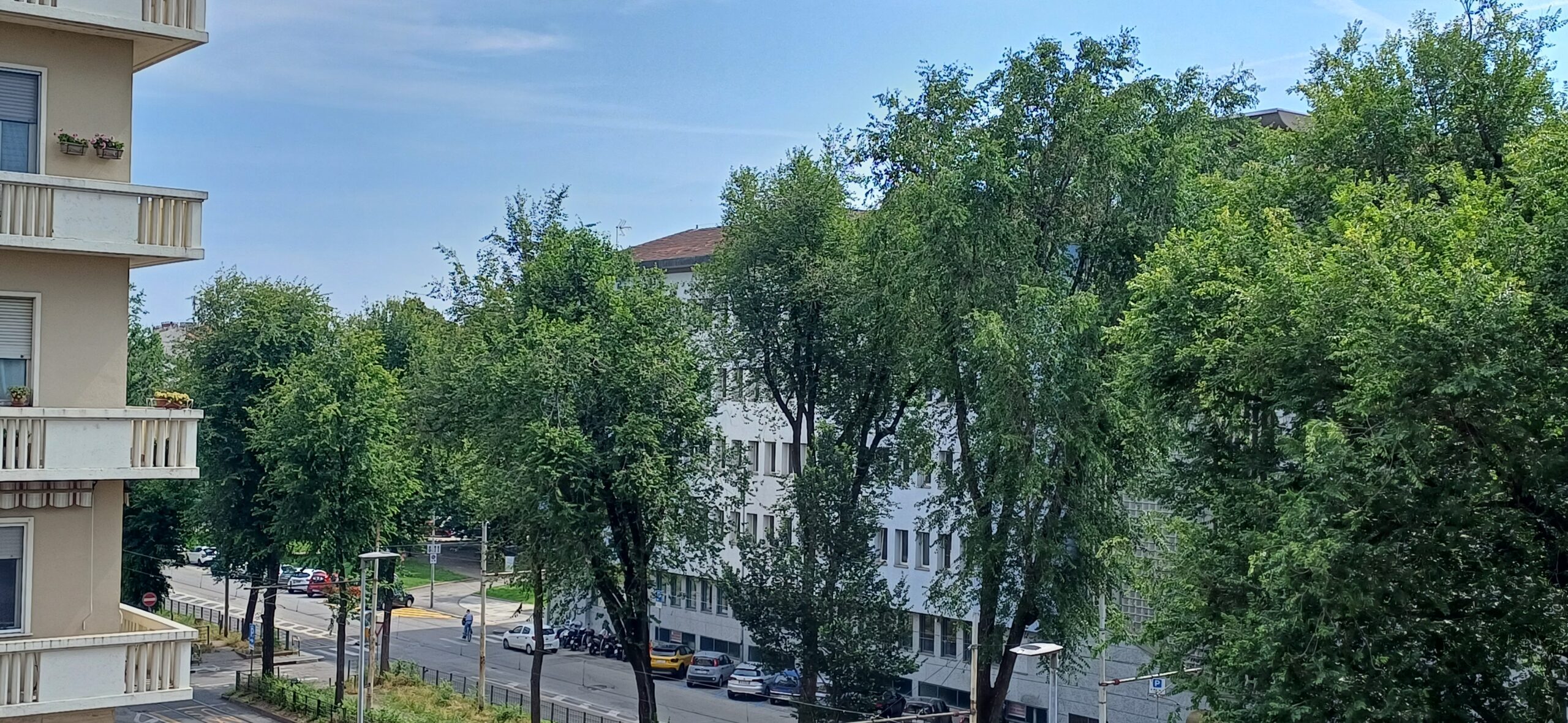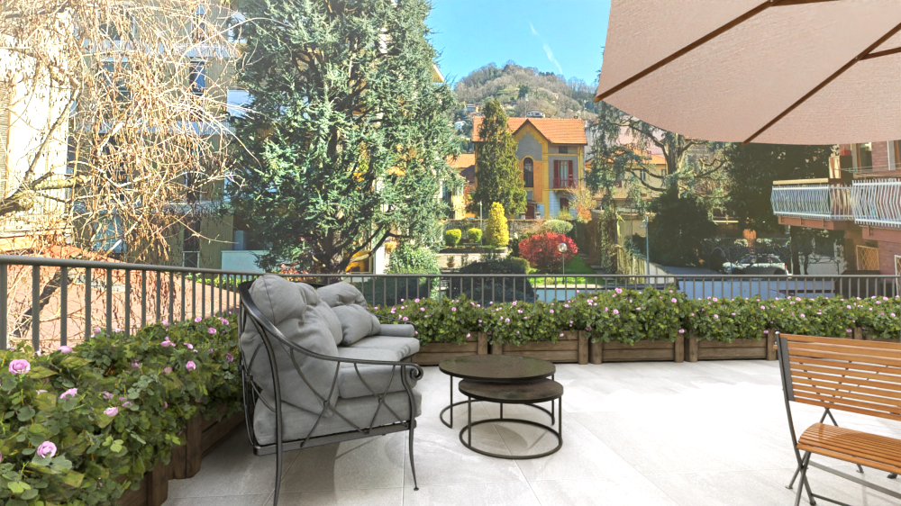 Molto luminoso e silenzioso, con doppia esposizione su giardini fioriti, cortili . Terrazzo al piano di circa 55 mq con  bellissima vista.