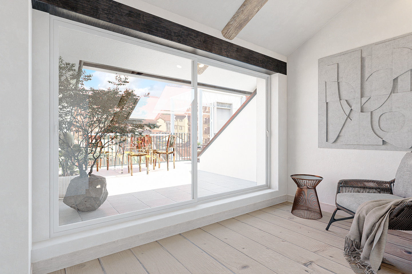 Attico mansardato completamente ristrutturato con terrazza e bellissima vista aperta sulla città